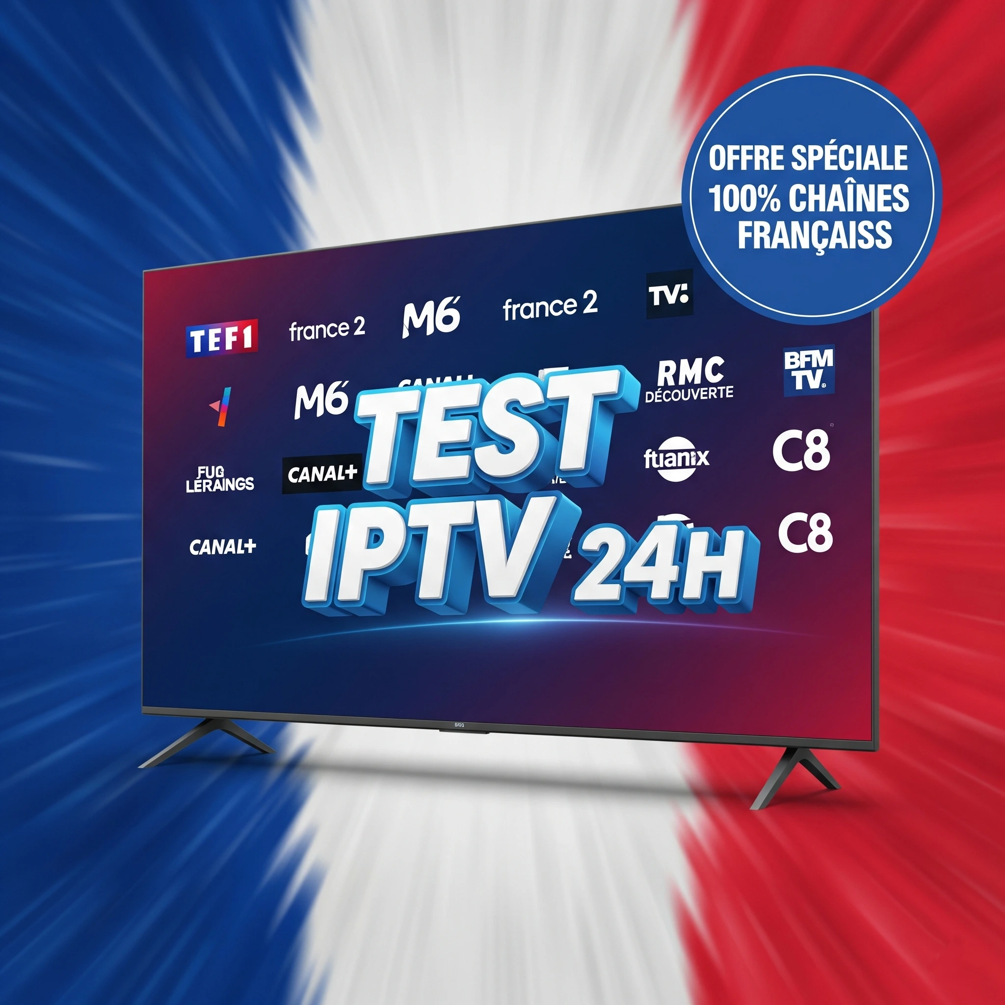Essayez notre IPTV 24H gratuitement ou à petit prix et découvrez tout le potentiel de notre service. Pendant 24 heures, accédez à des milliers de chaînes TV internationales, des films, des séries et du sport en HD, Full HD ou 4K.